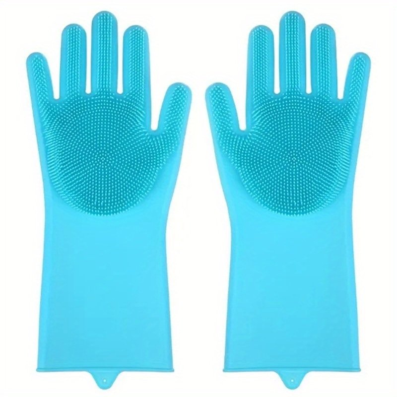 Home > 1pair Kitchen Silicone Dishwashing Gloves; Housework Cleaning Waterproof Insulation Magic Gloves; Dishwashing Brush