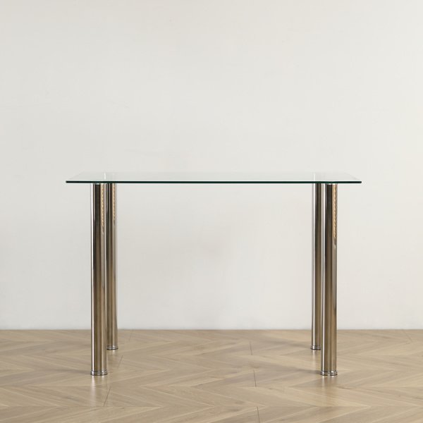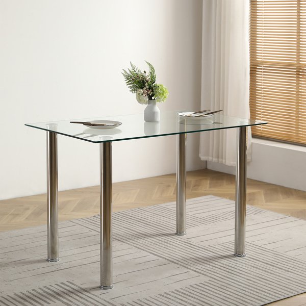4-seat simple rectangular cylindrical leg table tempered glass stainless steel clear glass 110 * 70 * 75cm N201(Replace encoding13029115)