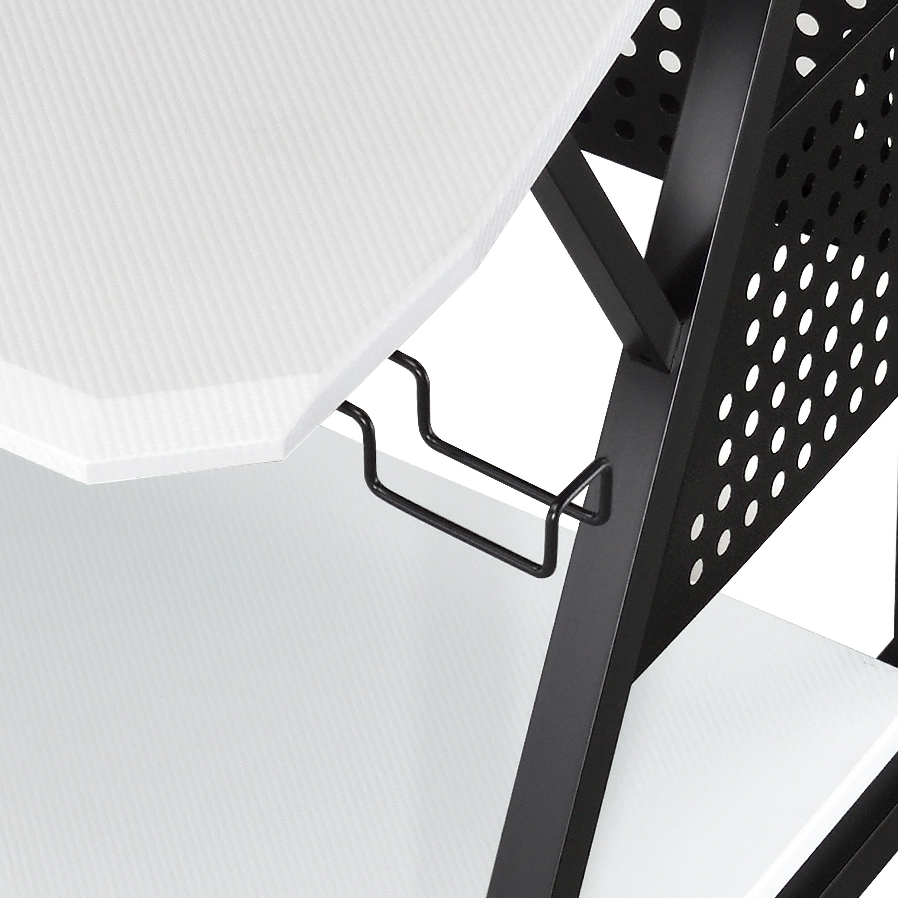 Product Details•KD•Rectangular Music Desk•Table Top Thickness: 18 mm•4 Wheels Included•2 Speaker Shelves Included•1 Keyboard Tray Included•Earphone Rack Included