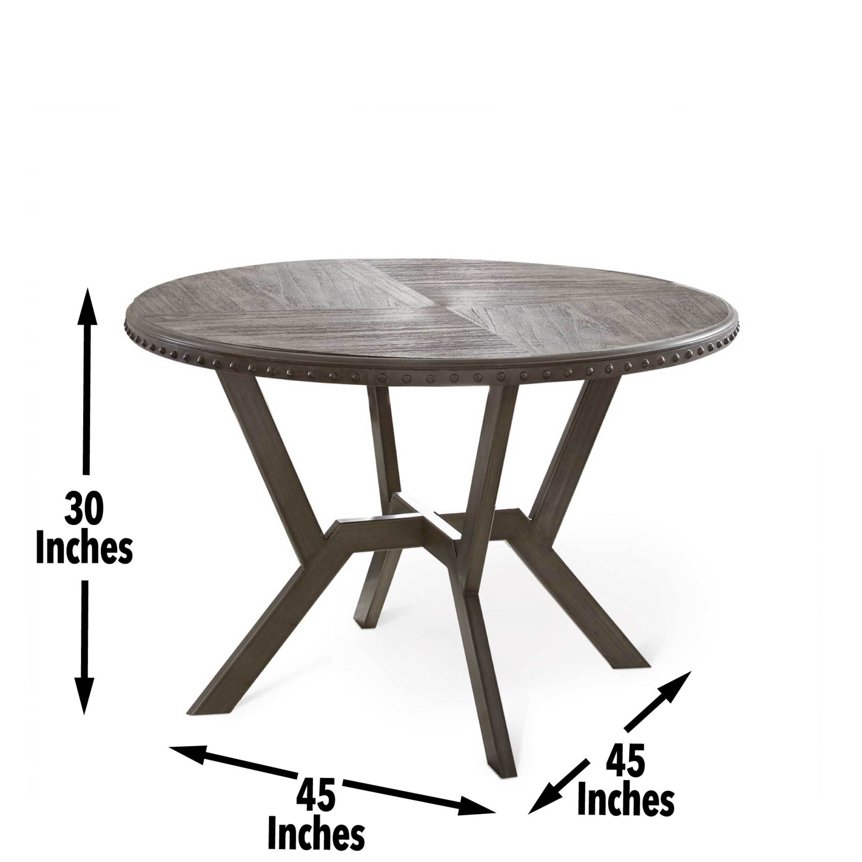 Constructed of paulownia veneers in a gray finish with gray metal and black hand brush accents