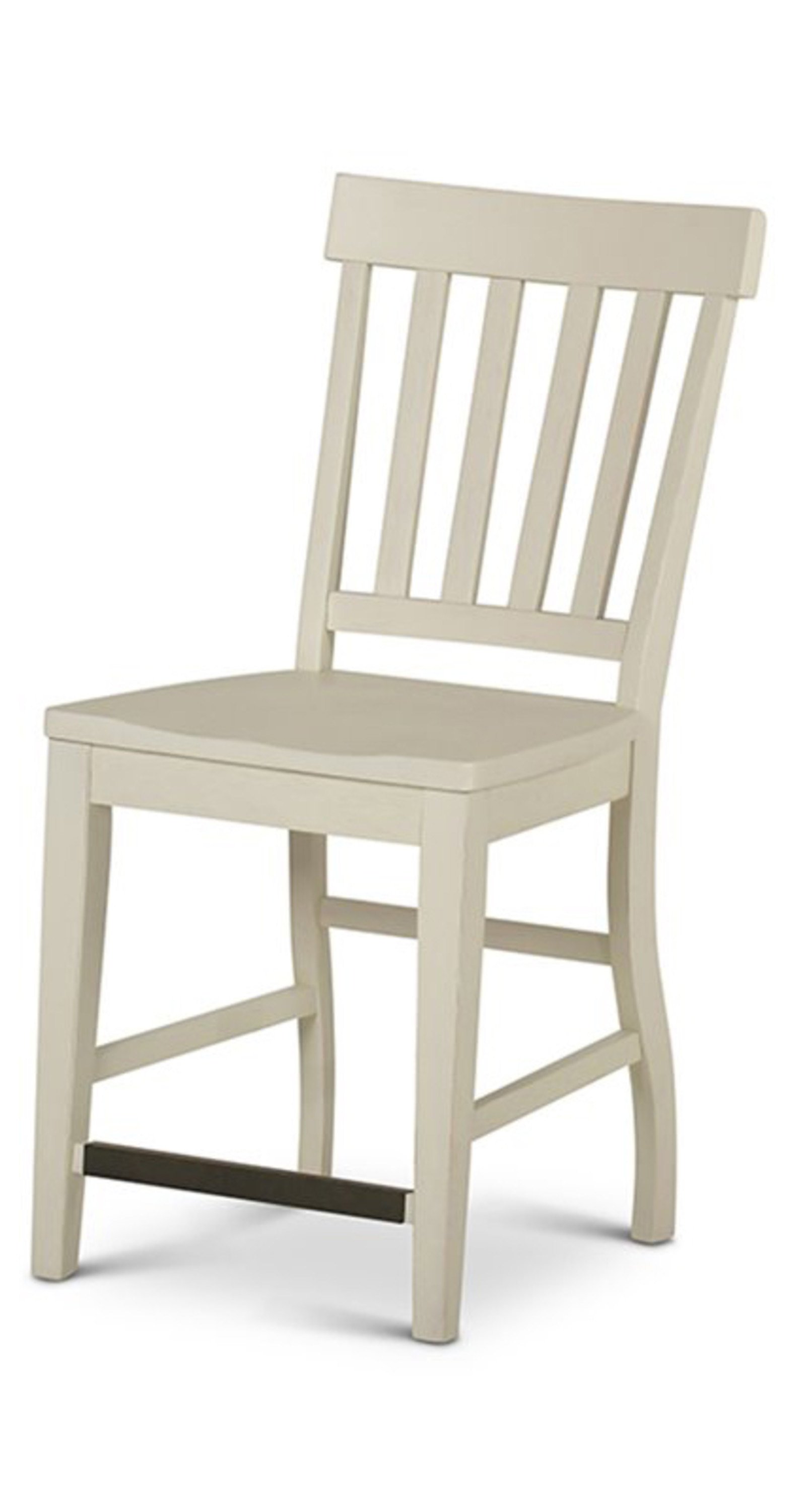 Counter height chairs are available in vanilla or dark oak and feature a slat back with scooped wooden seat.