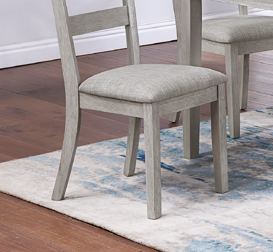 Classic Simple Rustic Gray Finish 7pc Dining Set Kitchen Dinette Wooden Top Table and Chairs Cushions Seats Ladder Back Chair Dining Room
