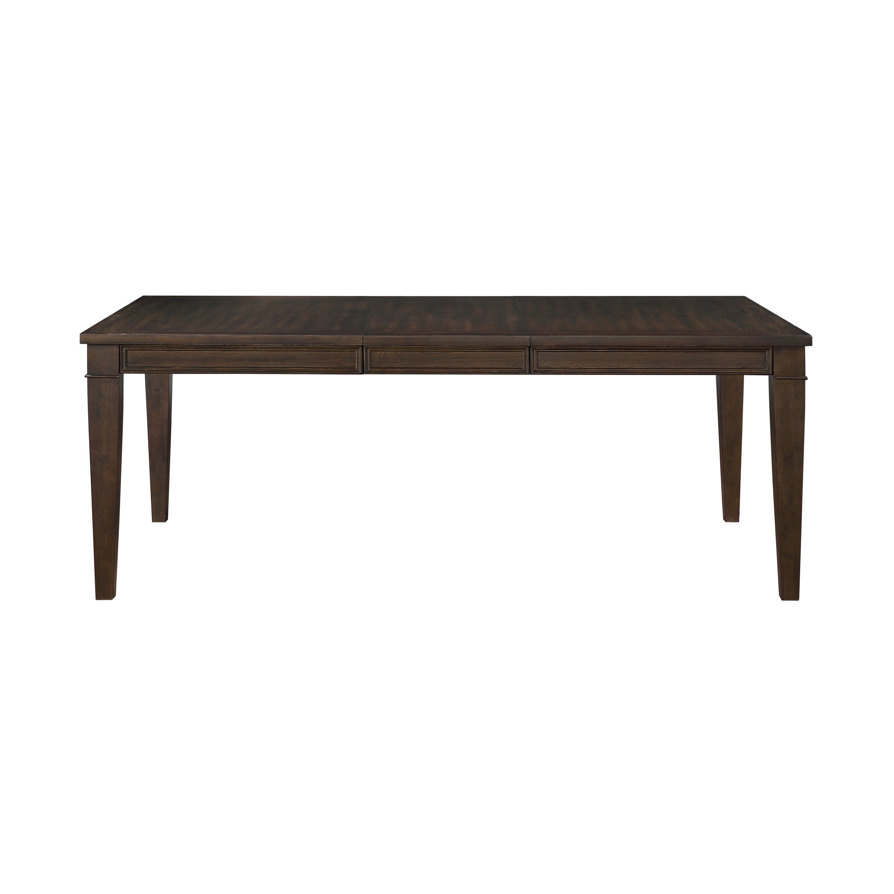Description & DimensionsThe look of Arts and Crafts styling is updated for the modern home in the Makah Collection. Classically framed chairs pair with the tapered leg table to create this casual dining look. A dark brown finish highlights the wood veneer allowing for the neutral tone of the seats to blend with little effort. Table apron and chairs feature framing that lends accent to the classic look. PRODUCT DIMENSIONS:DINING TABLE: 41.75" x 60"-70" x 30"H (18" x 1 Leaf)SIDE CHAIR: 19.25" x 24" x 40"HListing Includes: 5pc Dining Set (1 Dining Table and 4 Side Chairs) Only.Bench & Server: Not included.Simple Assembly Require.