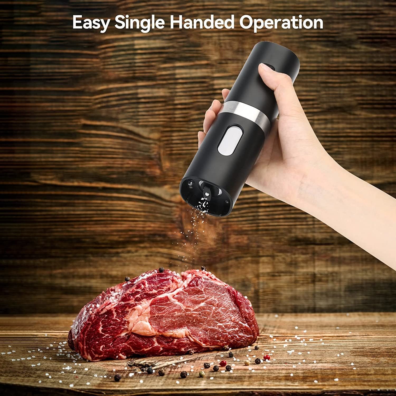About this project[USB Charging and Battery Dual Use - Salt and Pepper Grinder Set]- This electric salt and pepper grinder set has a built-in rechargeable 1200mAh (4*300mAh) battery; just put the grinder on the charging base to charge it.