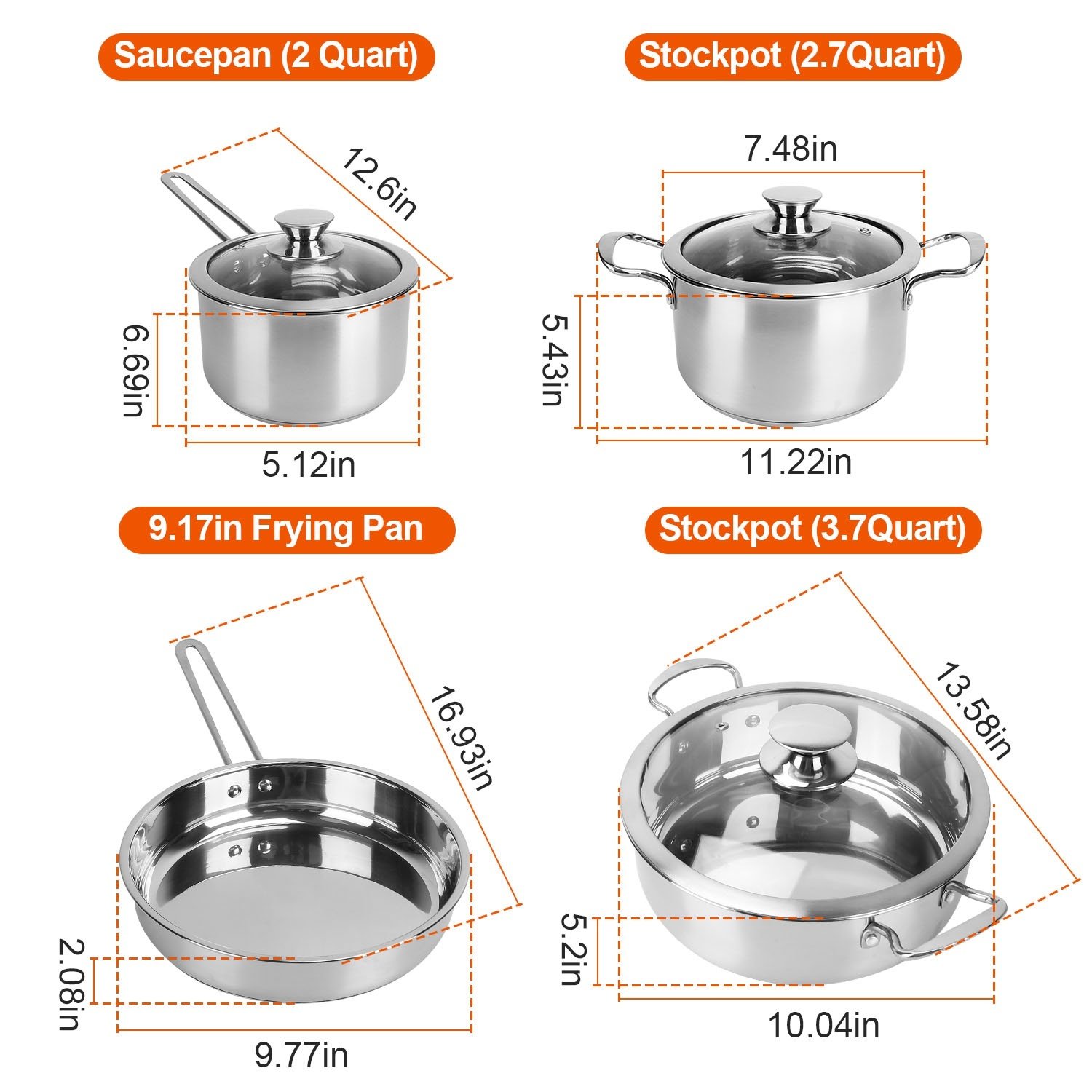Home > Stainless Steel Cookware Set Fast Even Heat Induction Pots Pans Set Dishwasher Safe with 2.7 3.7 Quart Stockpot 2 Quart Saucepan 9.17in Frying Pan