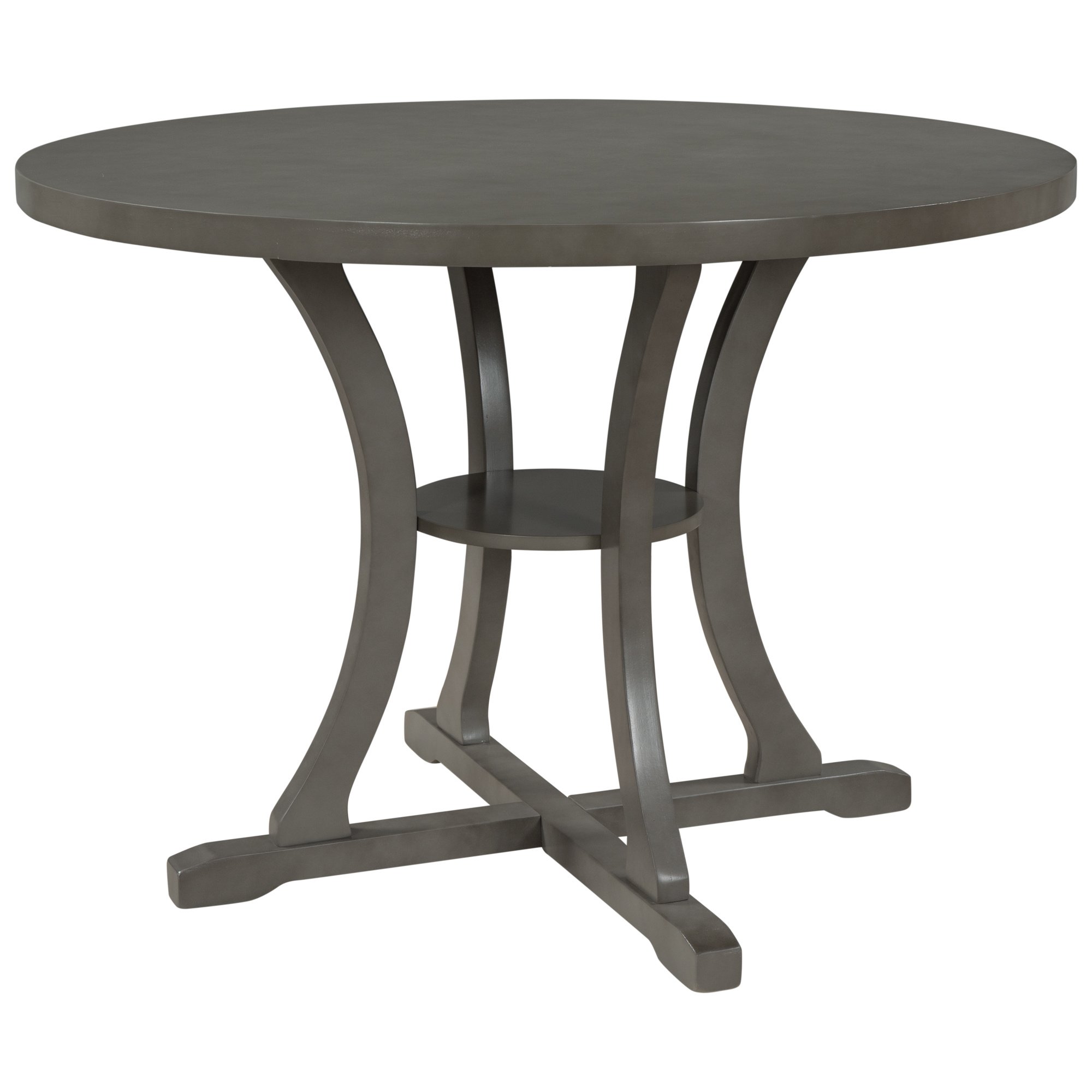 Home > TREXM 5-Piece Round Dining Table and Chair Set with Special-shaped Legs and an Exquisitely Designed Hollow Chair Back for Dining Room (Gray)