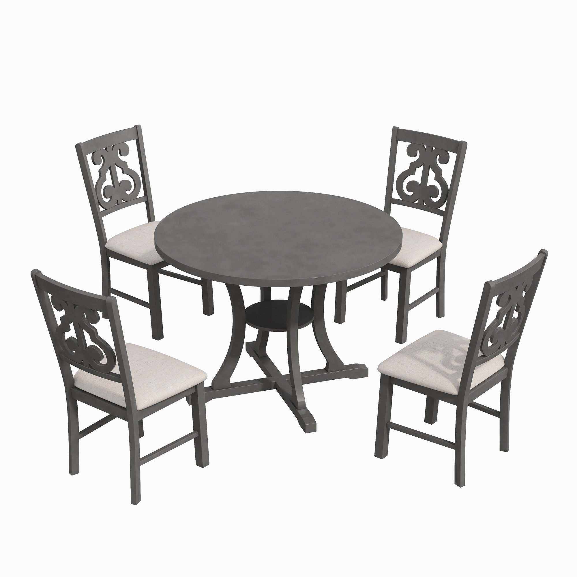 TREXM 5-Piece Round Dining Table and Chair Set with Special-shaped Legs and an Exquisitely Designed Hollow Chair Back for Dining Room (Gray)
