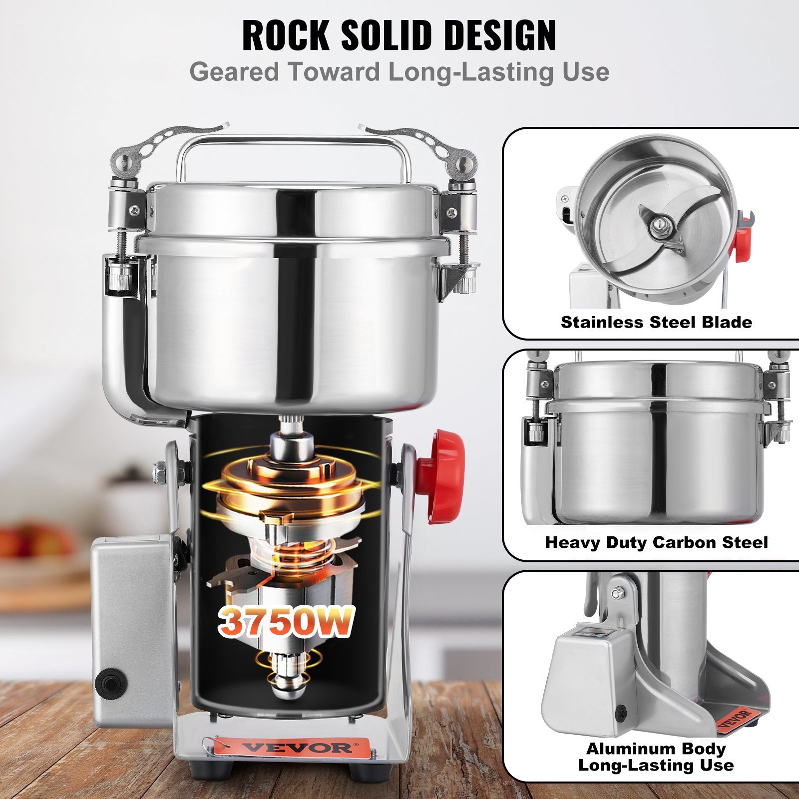 VEVOR 2500g Commercial Spice Grinder Electric Grain Mill Grinder High Speed